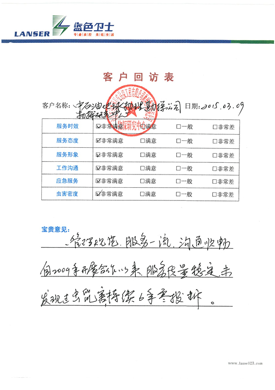 通過合作,對四害的消殺控制的很好,符合項目品質(zhì)要求!